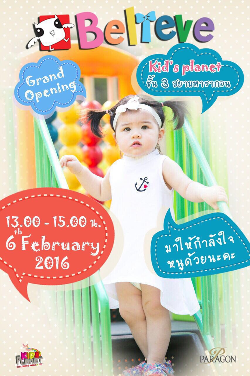 พบกับงานเปิดตัวแบรนด์เสื่้อผ้าเด็ก "Believe kloset" ที่ Kids' Planet ชั้น 3 Siam Paragon พร้อมแฟชั่นโชว์สุดน่ารักสดใสจากครอบครัวดาราที่มีชื่อเสียง อาทิ ครอบครัวคุณจ๊อบ นิธิ ,คุณเเจ๊ส ชวนชื่น , คุณต็อก ศุภกรณ์ , ดีเจเจมส์ EFM , คุณไอซ์ ณพัชรินทร์ ,คุณโจ๊กเกอร์ นพัตฏ์ธร และครอบครัว คุณตั๊ก บริบูรณ์ ในวันพรุ่งนี้ที่ 6 กุมภาพันธ์ 2559 เวลา 13.00 - 15.00 น